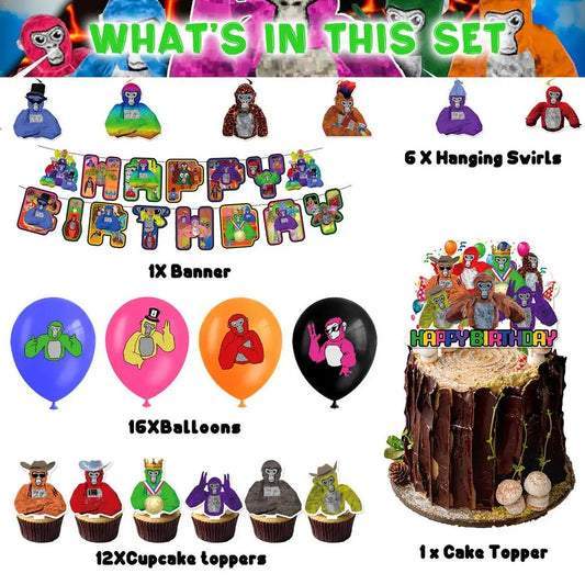Gorilla Tag Theme Birthday Party Decoration Balloon Banner Paper Plate Cup Napkin Tablecloth Party Supplies Baby Shower