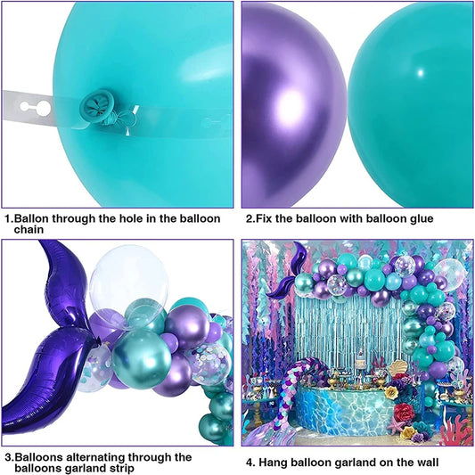 Little Mermaid Party Decorations Balloons Garland Arch Mermaid Tail Backdrop Fringe Curtain For Girls Birthday Party Supplies