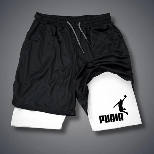 Men's Letter Print Shorts Gym 2 In 1 Running Shorts Men Summer Thin Sportswear Double-deck Gym Training Jogging Short Pants